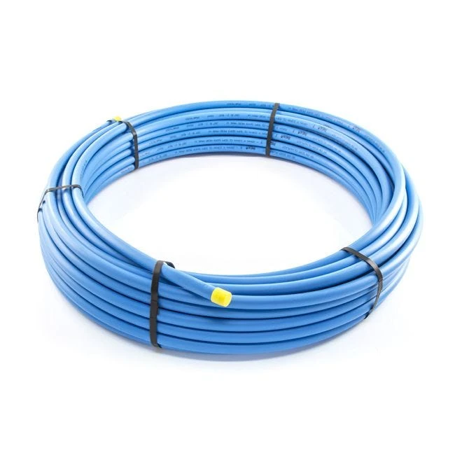 Blue PE80 medium density polyethylene pipe for mains cold water supplies, Kitemarked; approved to BS EN 12201. Supplied in plain ended coils. Made by a BS EN ISO 9001:2008 registered company. May be joined using electrofusion or compression fittings.