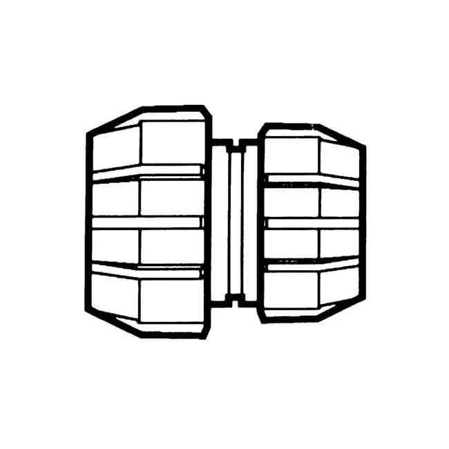 25 mm x 3/4″ Polyfast compression fitting, with blue nuts and black body, for joining MDPE (blue or black), LDPE, HDPE normal gauge and heavy gauge pipe.